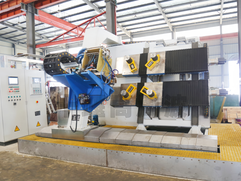 工作方式:斜立式結(jié)構(gòu),橫梁上掛載2組感應(yīng)器,感應(yīng)器伺服移動(dòng)定位,感應(yīng)器自動(dòng)找工件間隙,淬火時(shí)自動(dòng)跟蹤;工件四點(diǎn)式定位,自定心裝夾,工作臺(tái)伺服旋轉(zhuǎn)、無間隙分度。